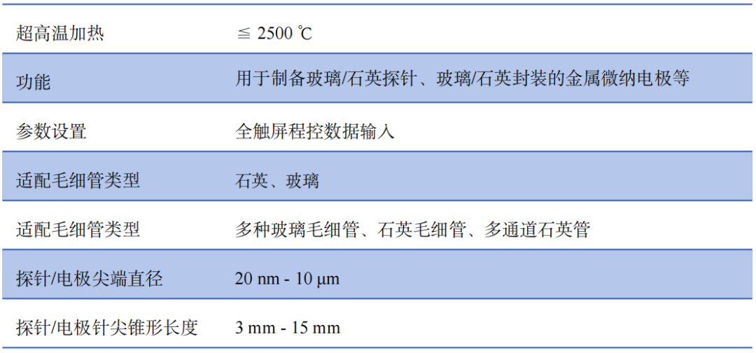 专门用于拉制单/多通道石英及多种玻璃毛细管,能够制造多种功能的微纳探针及金属电极。