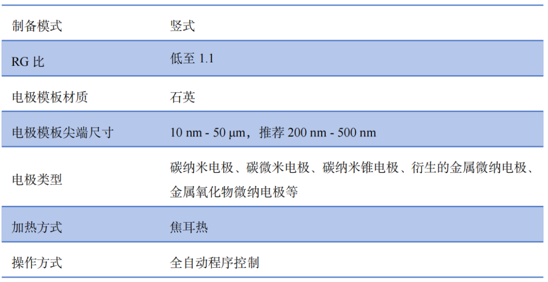 多模式拉制程序:可选择的控制参数(速度or加热时间),为微纳探针和圆盘电极的制备提供更多选择。